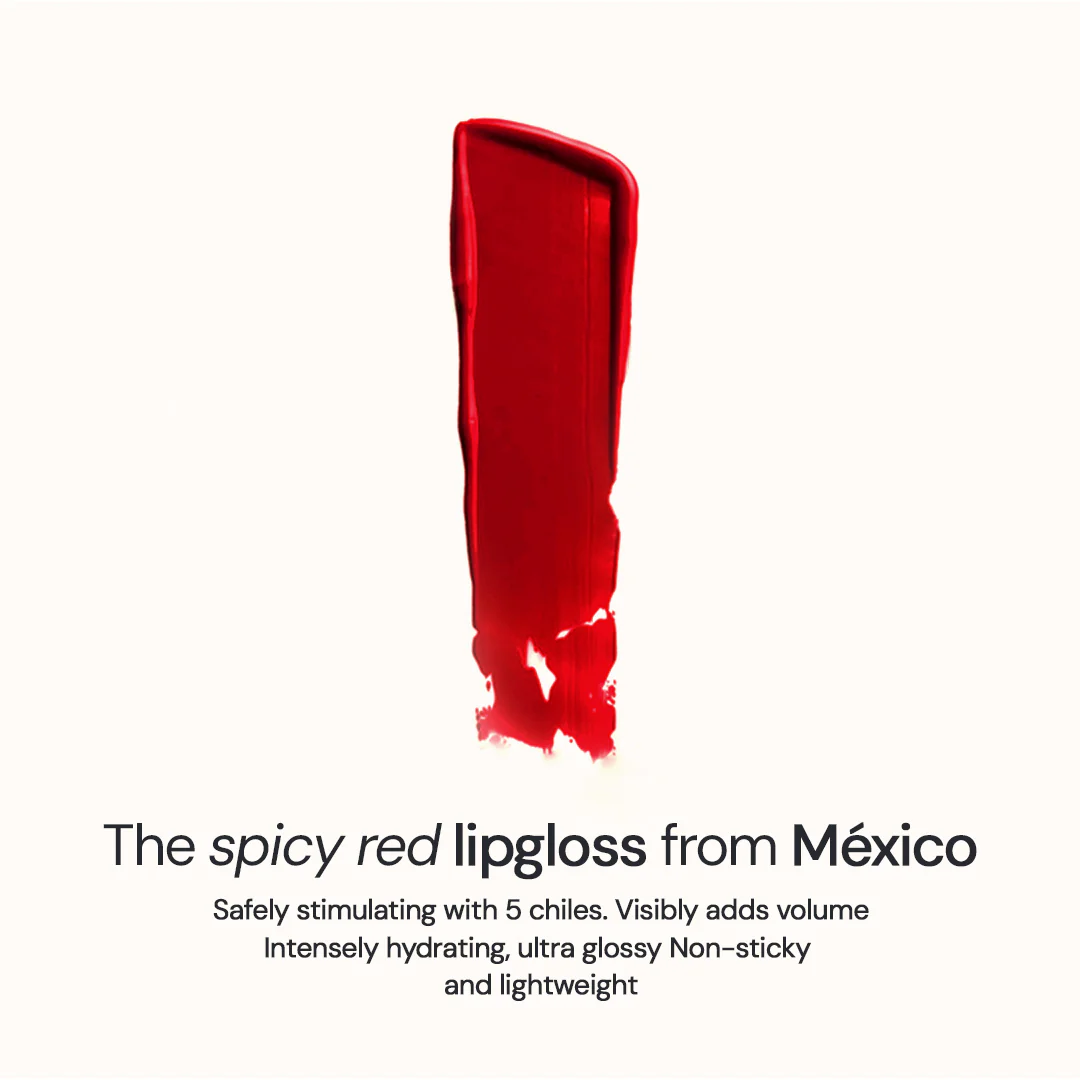 Spicy formula, shocking volume—safely stimulating, 5-chile infused formula plumps and volumizes lips. Locked-in hydration and a juicy, non-sticky, gloss-like shine.